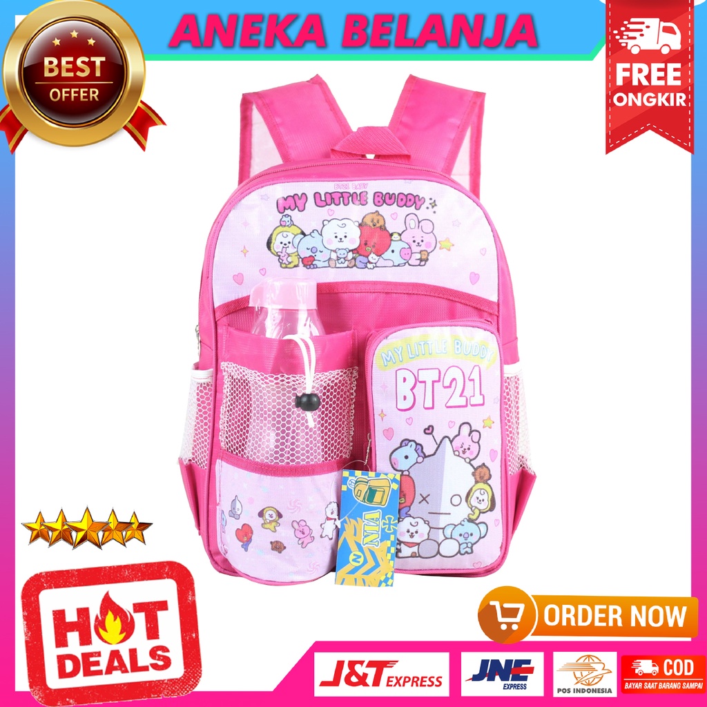 - Ukuran 25x9x32 cm - Bahan POLYESTER - 1 Ruang Resleting Utama + 2 Saku Kanan Kiri + 1 Resleting Depan - 1 Saku depan tempat minum - Nyaman di punggung, bagian punggung juga di lapisi busa/emboss - Cocok untuk sekolah, hangout dll.