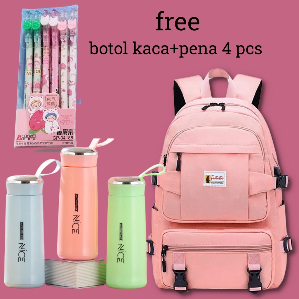 Detail Tas Sekolah Anak Perempuan SD SMP SMA Ransel Kerja ORIGINAL Tas Sekolah Anak Laki-Laki Free Botol Minum Kaca