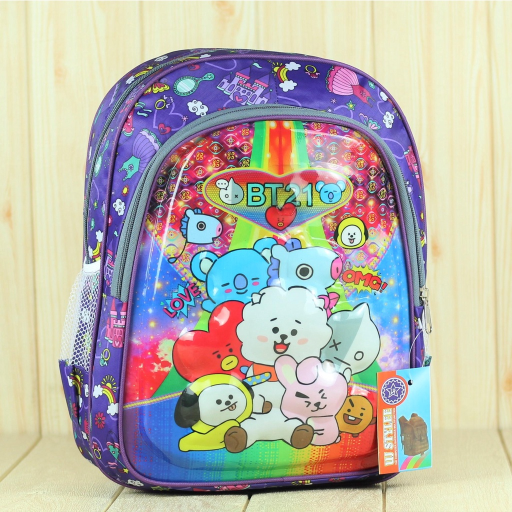 Tas Sekolah Anak Perempuan TK Lampu BT-21 Ungu Paud Gambar Kartun Karakter Terbaru Lucu Premium SD SMP Mini Murah BT21 Motif Karakter Berkualitas