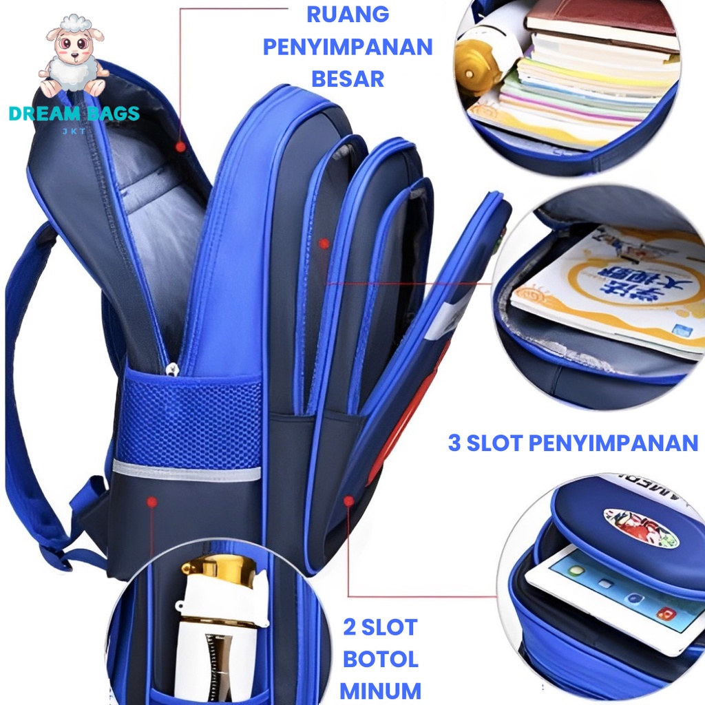 Tas Sekolah Anak SD Laki Karakter Timbul 3D Import Dream Bags DB6112 - Tas Ransel Anak Import - Tas Anak Laki Laki