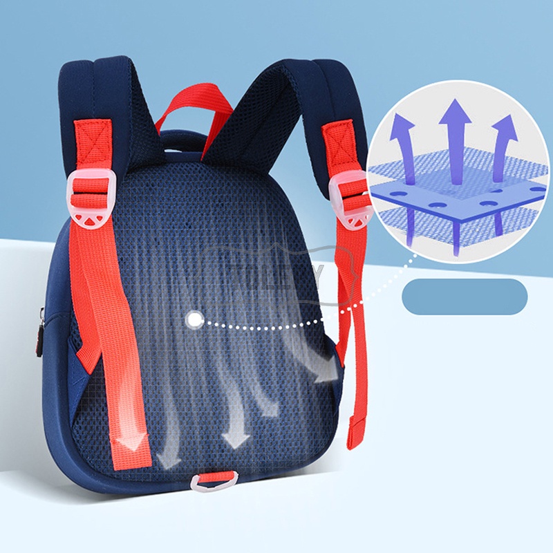 Terdiri dari 1 ruang besar yang dilengkapi dengan sekat untuk menyimpan buku/ tablet serta 1 kantong zipper pada bagian depan Serta dilengkapi dengan tali untuk menuntun anak yang dapat dipasangkan pada bagian bawah tas