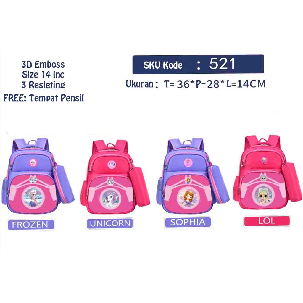 Tas Sekolah SD Ransel Anak Perempuan 3D Emboss Import