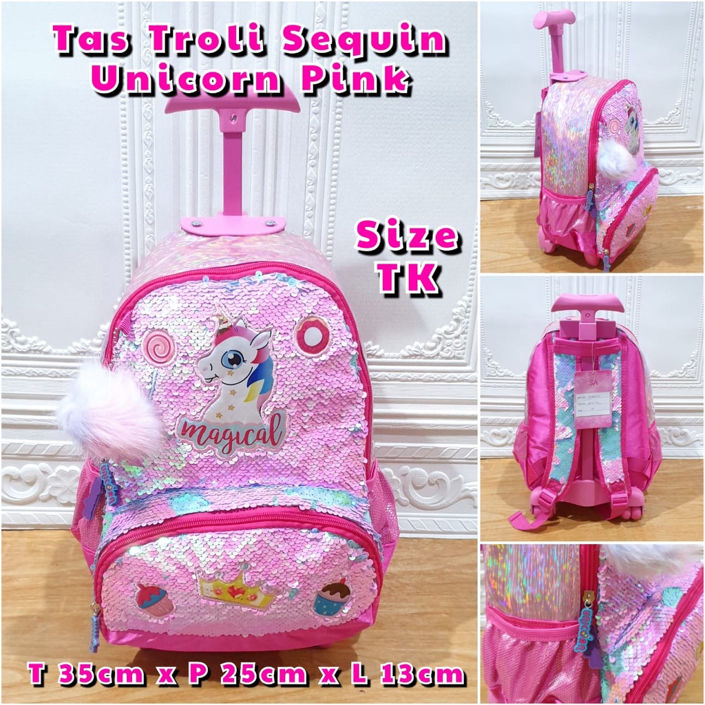 Tas Sekolah Troli Anak SD dan TK Tas Trolley Dorong Anak Sekolah Motif Sequin LOL dan Unicorn Tas Koper Anak Perempuan