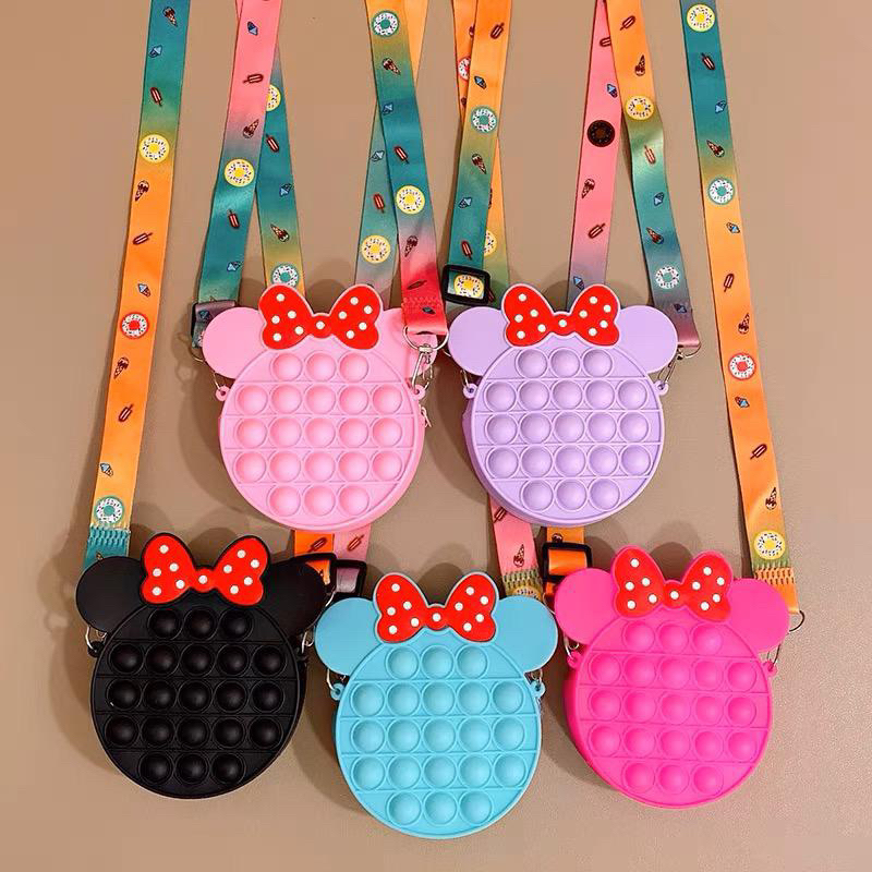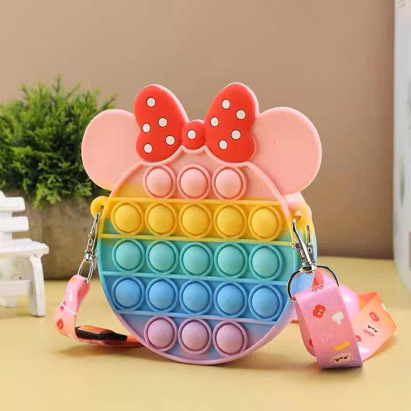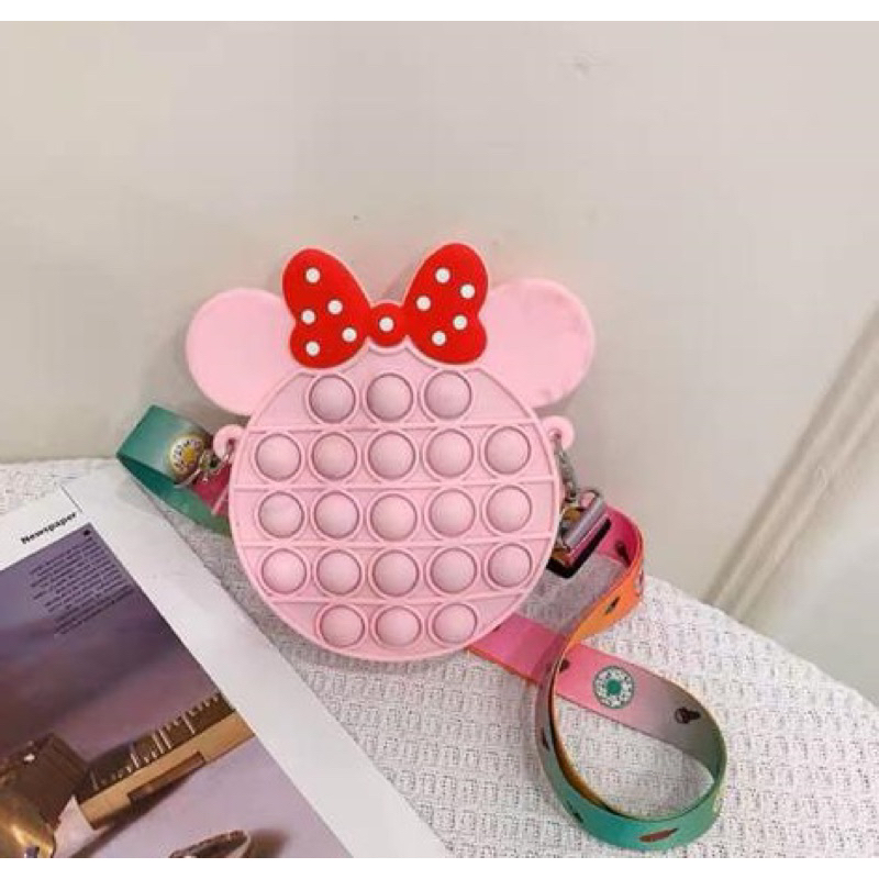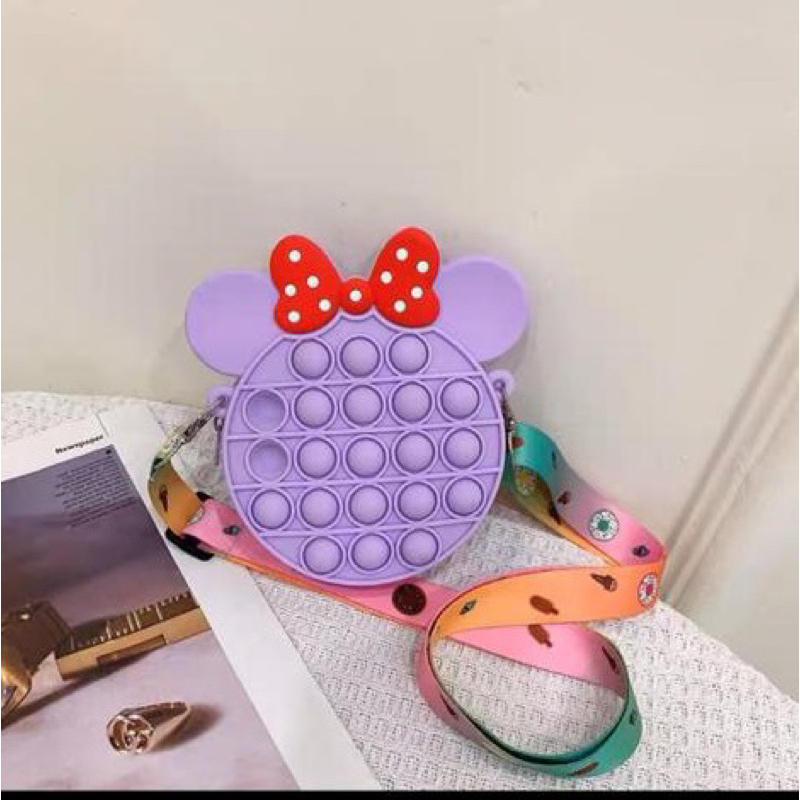 Detail Tas Selempang Anak 100% PREMIUM Minnie Mouse Jelly Pop It Rainbow