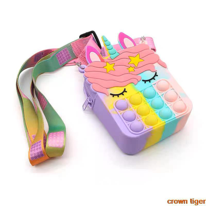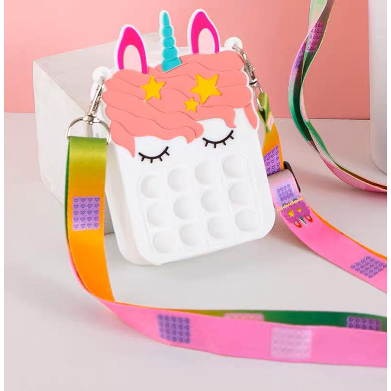 Detail Tas Selempang Anak Import Jelly Pop It Unicorn Rainbow