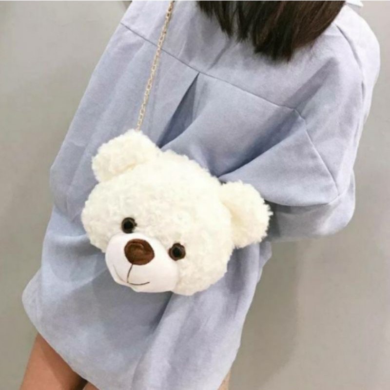 Detail Tas Selempang & Bahu Wanita Tas bulu selempang bahu boneka kepala beruang Sling Bag Bulu TEDDY BEAR