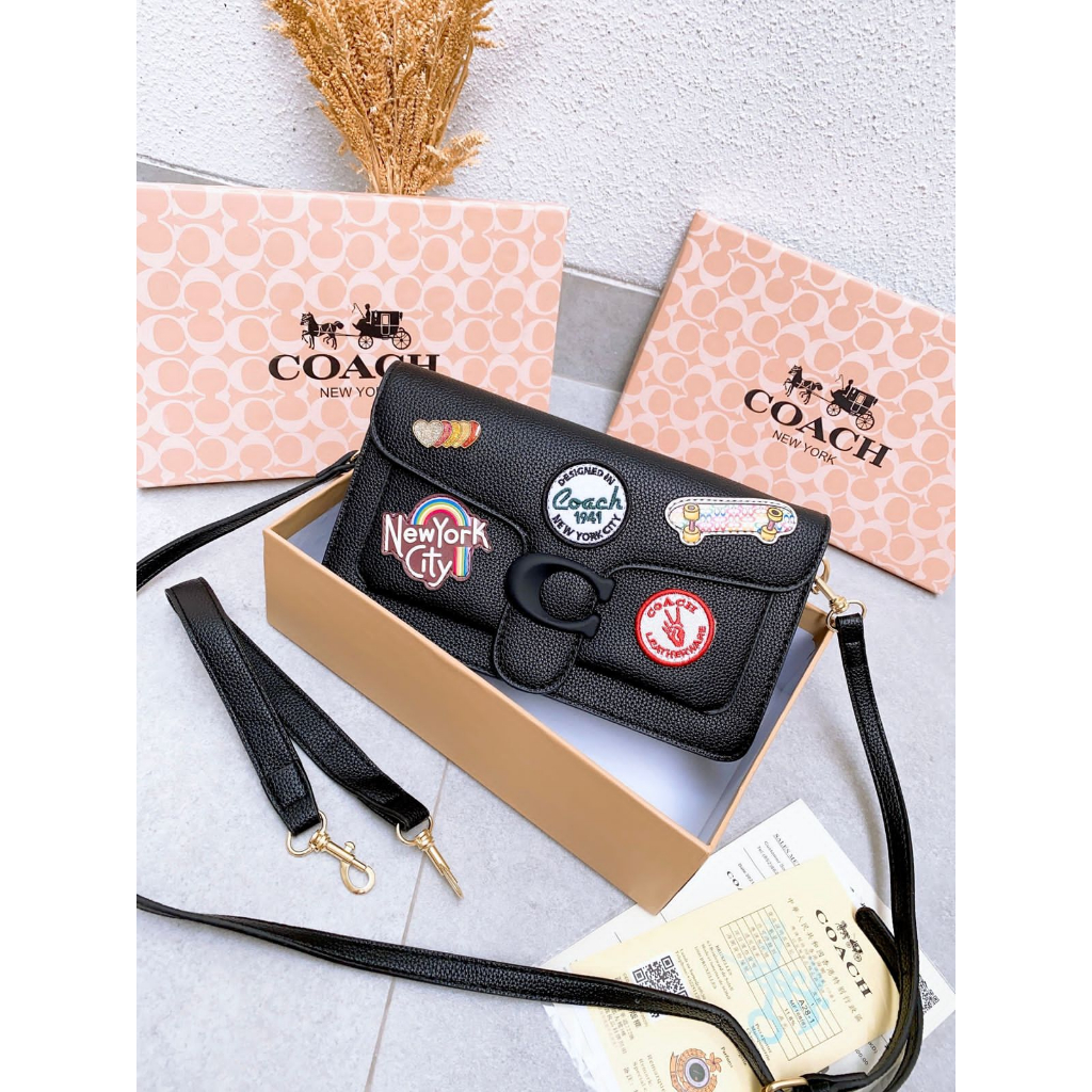 Detail TAS SELEMPANG CO*ACH TABBY WITH PATCHESS BOX SEGEL KODE C797 2 TALI , + FAKEBILL