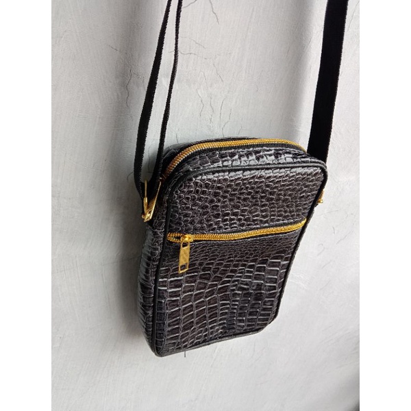 Sling bag crocodile material leather sintetic dimensi 19cm x 13cm real picture.