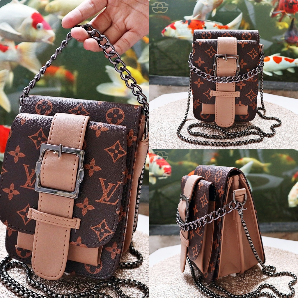 Detail Tas Selempang Hp Saku depan gesper 3 ruang 05-6799 Monou THR