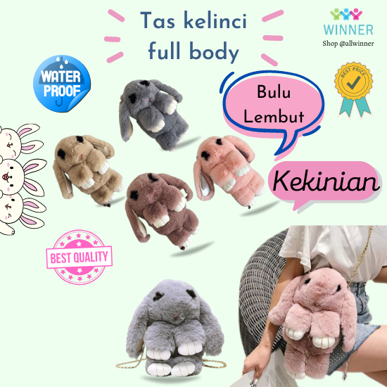 Tas Wanita > Tas Selempang & Bahu Wanita > TAS SELEMPANG KELINCI BULU Rabbit BESAR Tas Wanita Kelinci Gaya Kasual Kartun Lucu Bulu Lembut Fashion Korea Kekinian Mewah Murah Tas Anak Dewasa Rantai