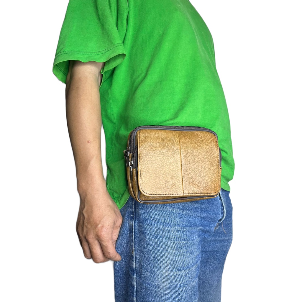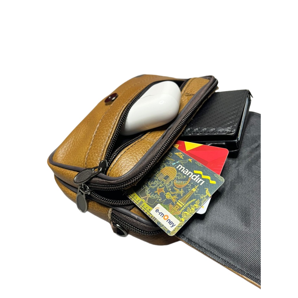 Detail TAS SELEMPANG KULIT ASLI IMPORT PRIA MULTIFUNGSI / TAS PINGGANG IMPORT PRIA KULIT ASLI / TAS HP PRIA LEATHER - 8013