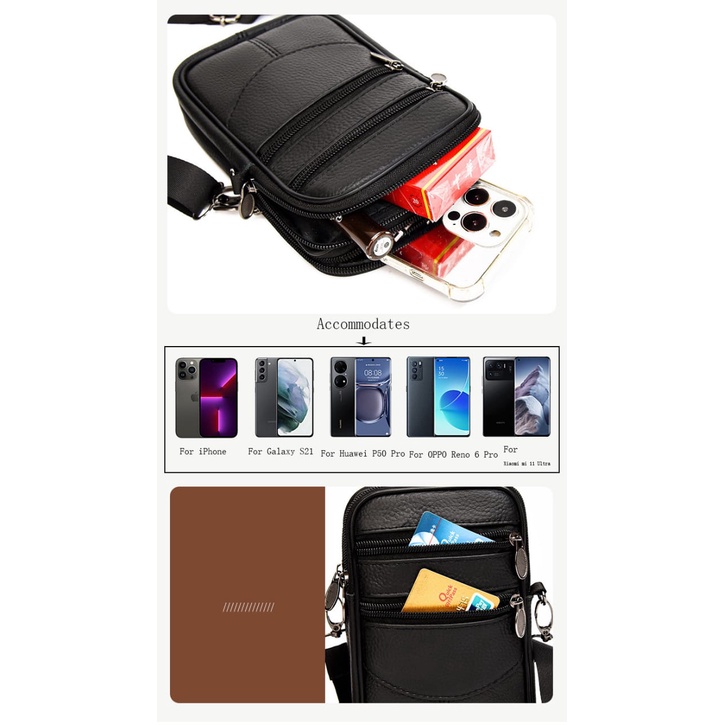 Detail TAS SELEMPANG KULIT IMPORT PRIA MULTIFUNGSI / TAS PINGGANG IMPORT PRIA KULIT / TAS HP PRIA LEATHER - 1006
