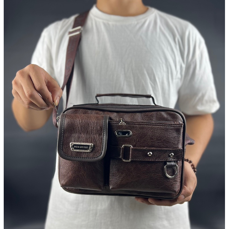 Tas Pria > Tas Selempang & Bahu Pria > Tas Selempang Kulit Original Polo Amstar Bahan Kulit PU Leather Waterproof Tas Pria Tas Selempang Pria Terbaru Slingbag Tas Polo Tas Kantor