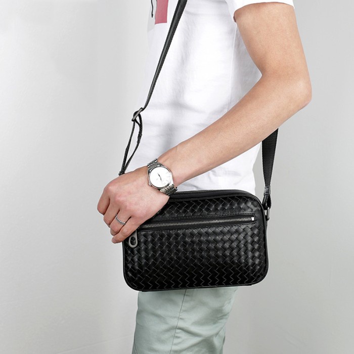 Detail Tas Selempang Kulit Pria Wanita Sling Bag Tas Bahu Slempang Kerja Motif Anyam Waist Bag Botega