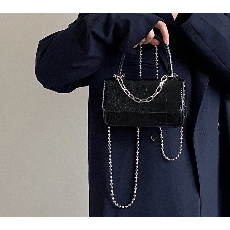 Detail Tas Selempang Kulit Wanita Tas Cewek Kecil Rantai Handbag Croc GH 195
