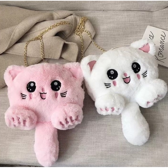 Tas Wanita > Tas Selempang & Bahu Wanita > TAS SELEMPANG PIKACHU KUCING TAS BONEKA GEMOY Model Kucing Lucu Bulu Korean Style Tas Bahu Wanita Unik Tas Selempang Boneka Tali Rantai
