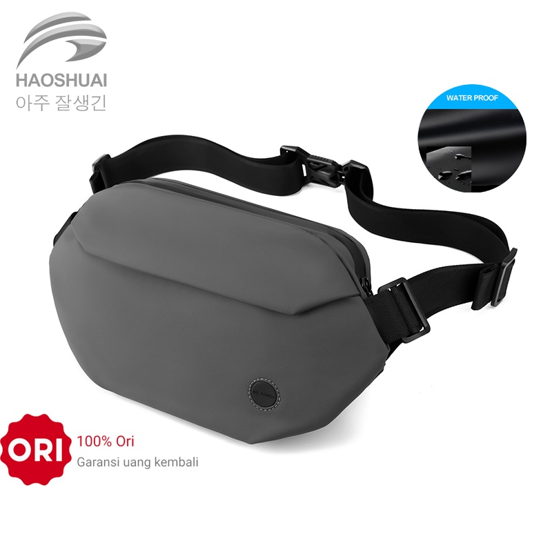 Detail Tas Selempang Pria HAOSHUAI 1248 Waistbag Pria Waterproof Buckle Magnet Bahan Dolby Lotto Coated
