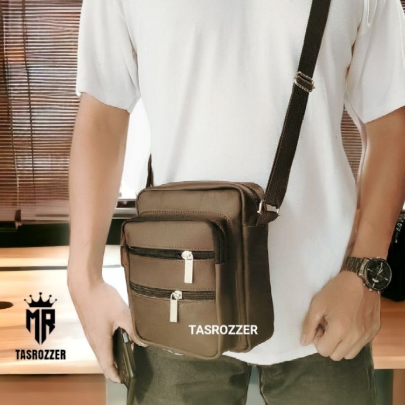 Tas selempang pria kecil polos kulit asli mirah