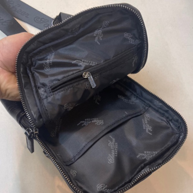 Detail Tas selempang Pria Kulit Sapi Asli cheer soul Tas Slingbag Kulit Asli Import
