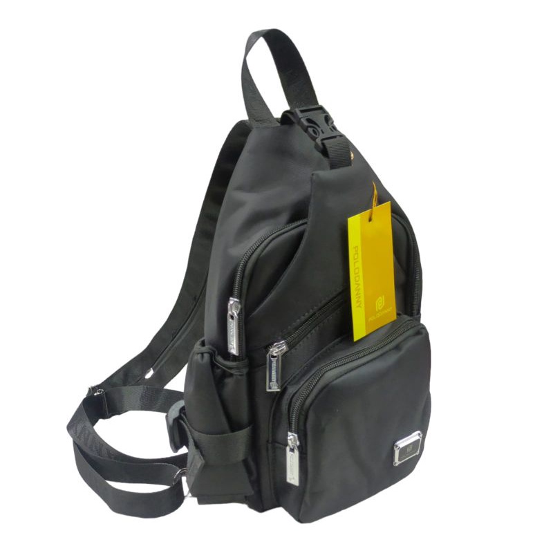 merk polodanny bahan nilon model tas slingbag bisa rangsel ukuran panjang 17cm tinggi 33cm lebar 6cm ada kabel USB 4 resleting
