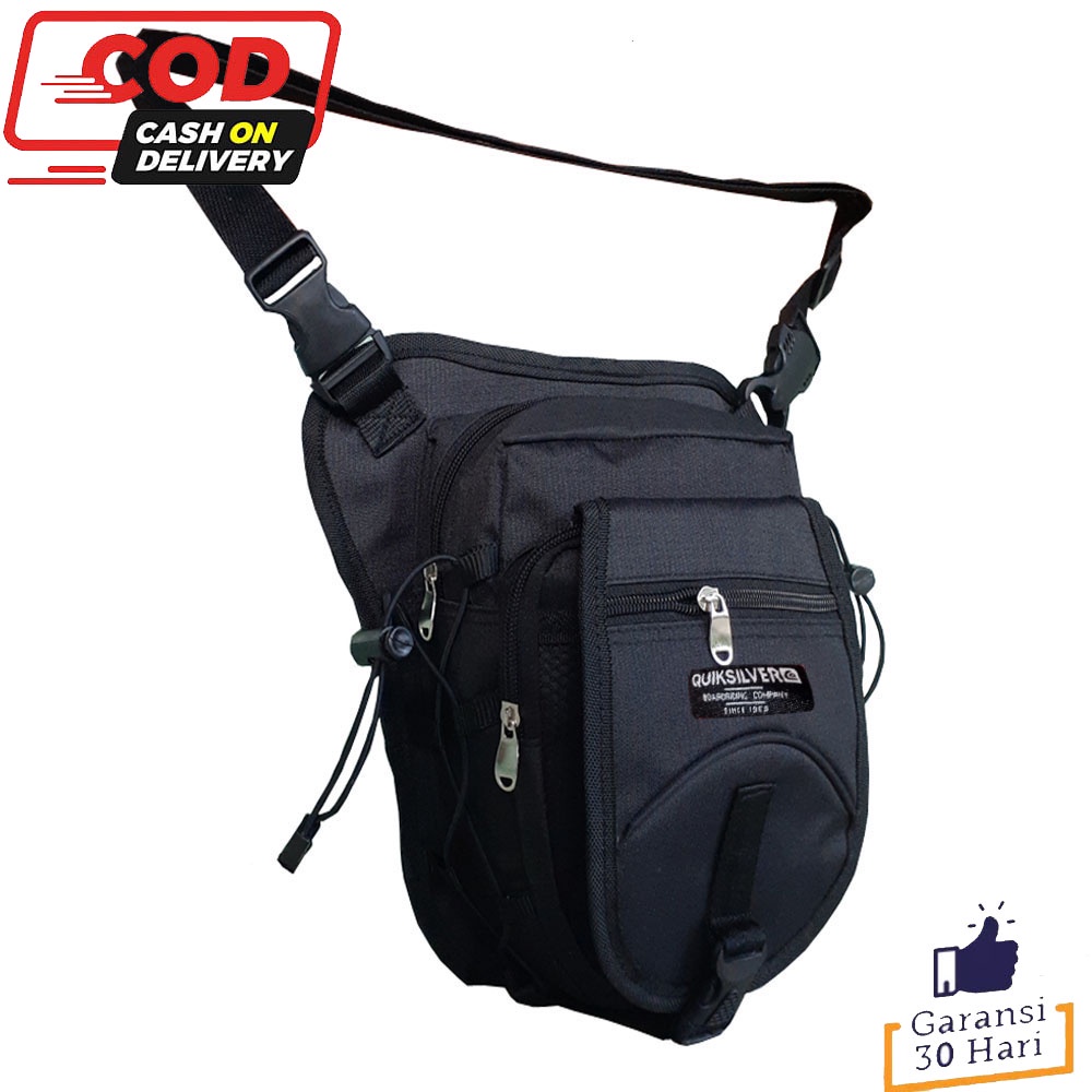 Tas Selempang Pria Quick Silver Tas 2in1 Tas Pinggang Tas Paha Tas Outdoor Tas Slingbag Pria PN-Emblem - Black Tas Fashion Pria Crossbody Bag Tas non USB Tas Gadget