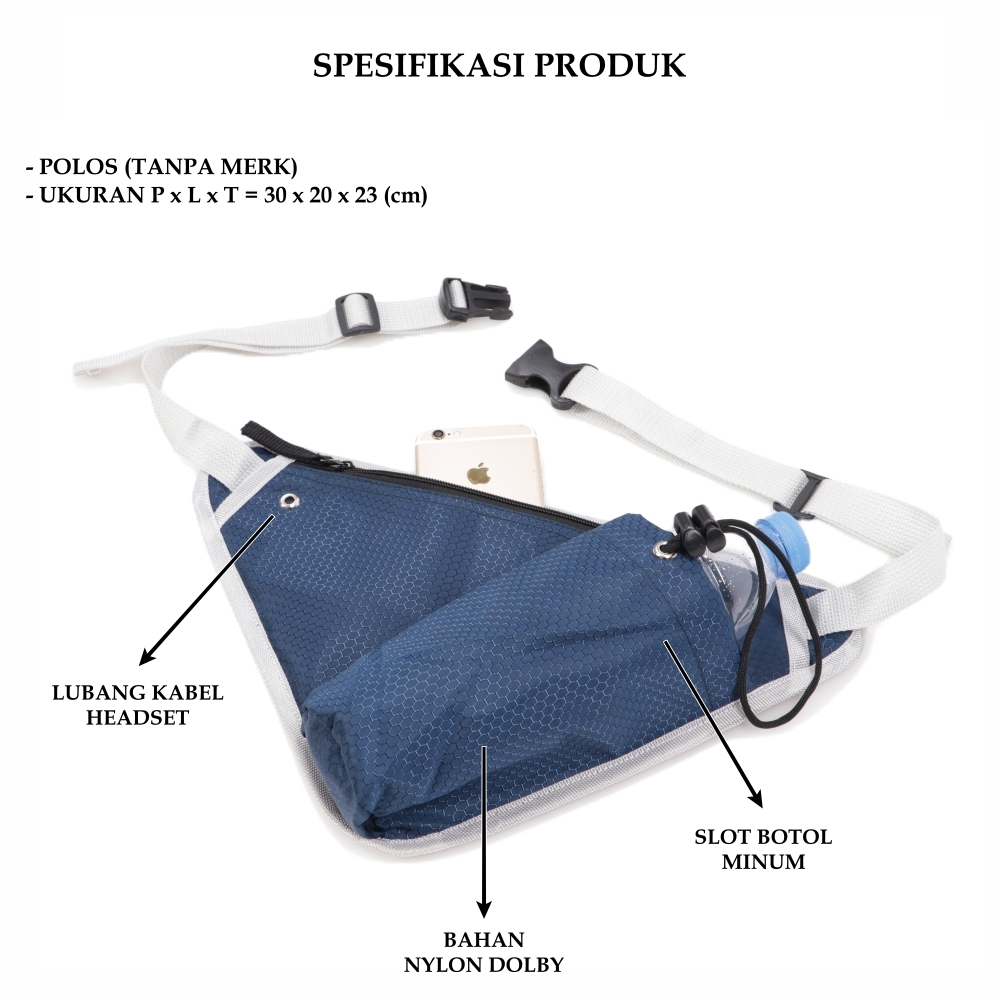 DESKRIPSI TAS SEPEDA : - POLOS TANPA MEREK - MATERIAL NYLON DOLBY - DIMENSI UKURAN P x L x T = 30 x 20 x 23 (cm) - DI DESAIN DENGAN SLOT KHUSUS BUAT BOTOL MINUMAN - DILENGKAPI LUBANG KABEL HEADSET / EARPHONE - BISA DIGUNAKAN UNTUK : AKTIVITAS SEHARI - HARI, BEROLAHRAGA (JOGGING, BERSEPEDA), JALAN - JALAN, DLL. - PEMAKAIAN MULTIFUNGSI : BISA DIPAKE (SELEMPANG / PINGGANG) - FUNGSI PENYIMPANAN : HP, DOMPET, KACAMATA, HEADSET / EARPHONE, KUNCI, BOTOL MINUM, DLL. - JAHITAN RAPIH - BISA DIPAKAI OLEH : ANAK - ANAK SAMPAI DEWASA (PRIA ATAU WANITA)