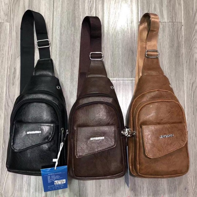 DETAIL PRODUK: 1. Material Kulit Import 2. Tersedia 3 kantong yg terdiri dari 1 resleting uk. besar, 1 resleting uk. sedang dan 1 kantong penutup di bagian depan 3. Lapisan dalam menggunan parasut jadi tidak tembus saat terkena hujan 4. Tali Tas PREMIUM Tebal