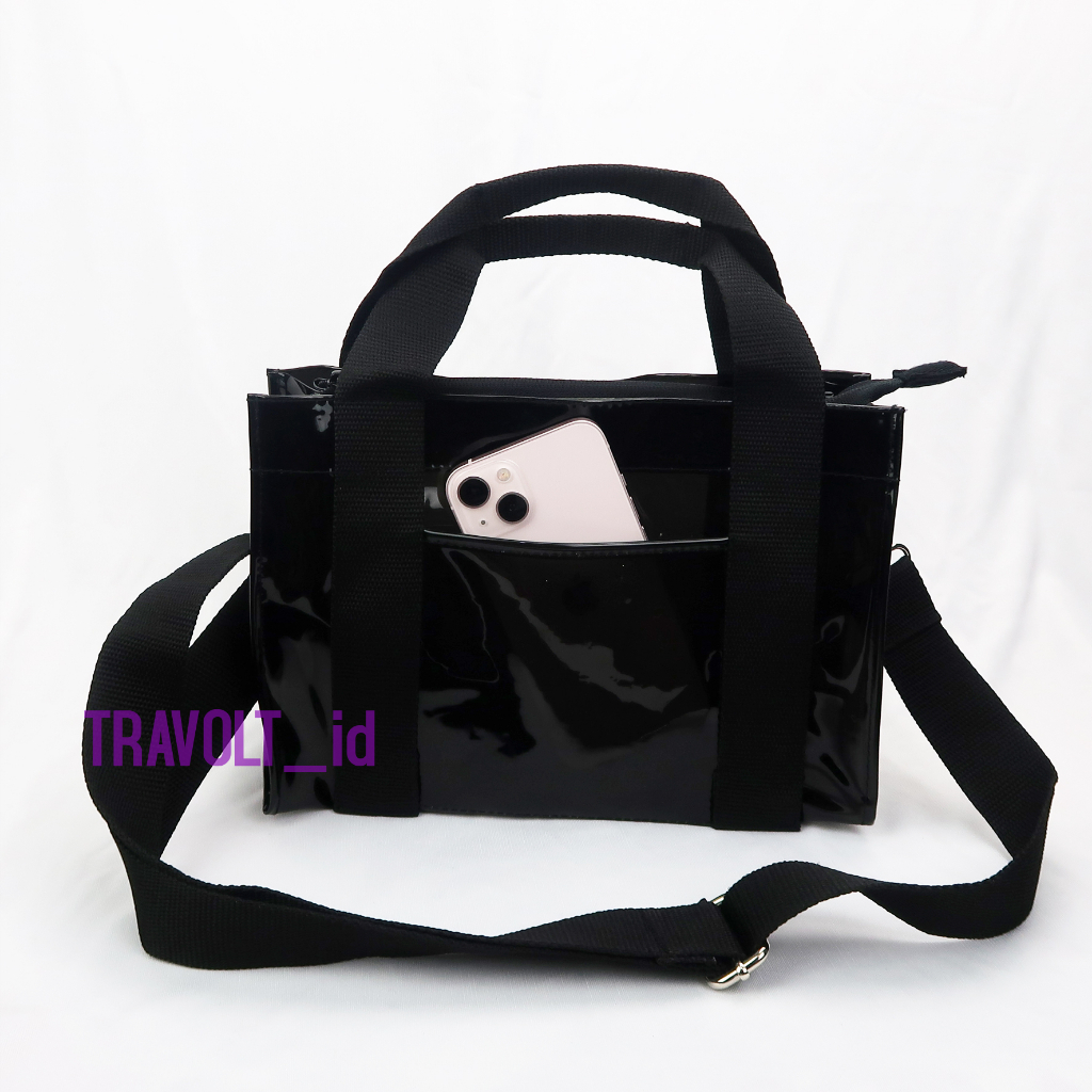 Tas Wanita > Tas Selempang & Bahu Wanita > Tas Selempang Transparan Resleting - Travolt - Sling bag pouch - Tas PVC Mika tebal - Tas Konser KPOP - Hand bag Tas Selempang - Black Edition