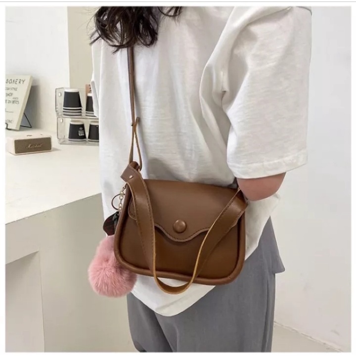Detail Tas Selempang Wanita GRACE POMPOM | Tas Wanita Korea | Tas Wanita Kekinian Import Murah Bisa COD
