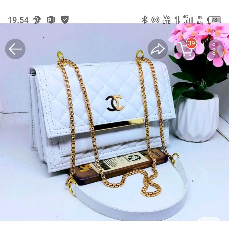- Varian warna : Black,white,mocca, Tan,Moka - Variasi gold (penutup kunci Mix Magnit) - Rantai Mix kulit sintetis - Bisa Handbag & Slingbag