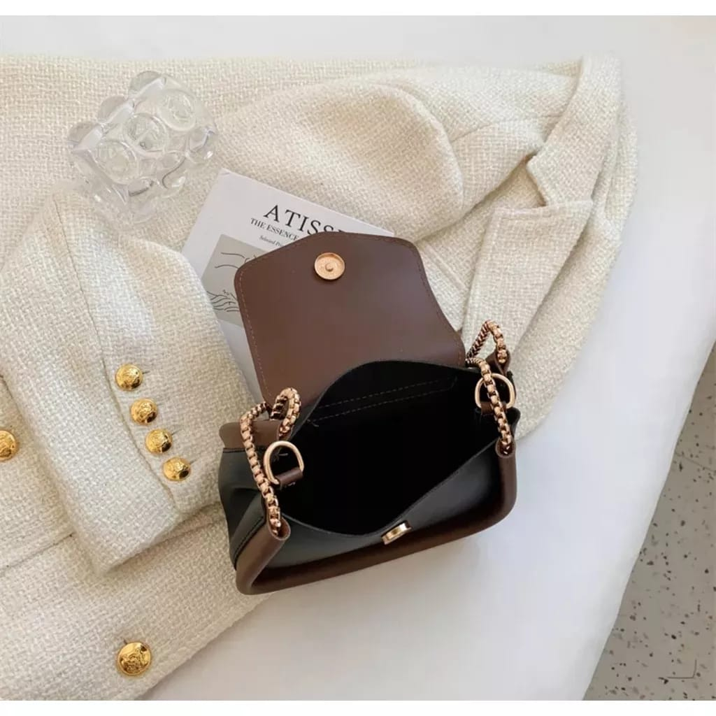Detail : - Bahan Miniso Tebal / Kulit Sintetis high quality - Tekstur bahan Halus, Lentur, Mudah dibersihkan - Penutup clip magnet - Style : Sling, Shoulder & Handle -Strap : 1 Tali Tas Panjang Adjustable & Tali Rantai Ulir - 1kg bisa muat 4 tas - Warna mungkin sedikit berbeda karena efek pencahayaan kamera dan efek pencahayaan layar ponsel masing-masing orang