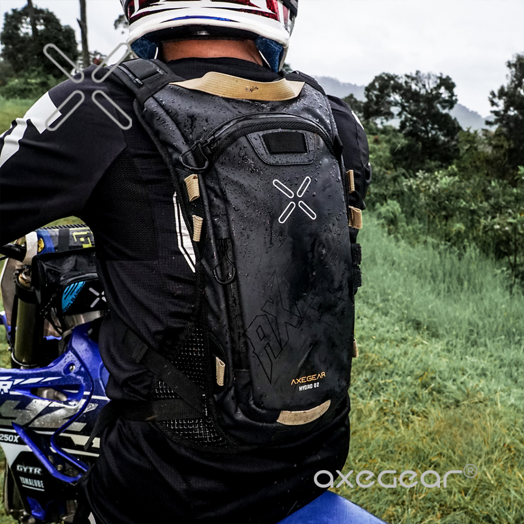 Deskripsi : Dengan desain yang inovatif dan elegan, AXEGEAR, RKYND dsn EXOM mampu memuat banyak barang untuk menemani kegiatan Offroad Enduro Trabas maupun Bersepeda.