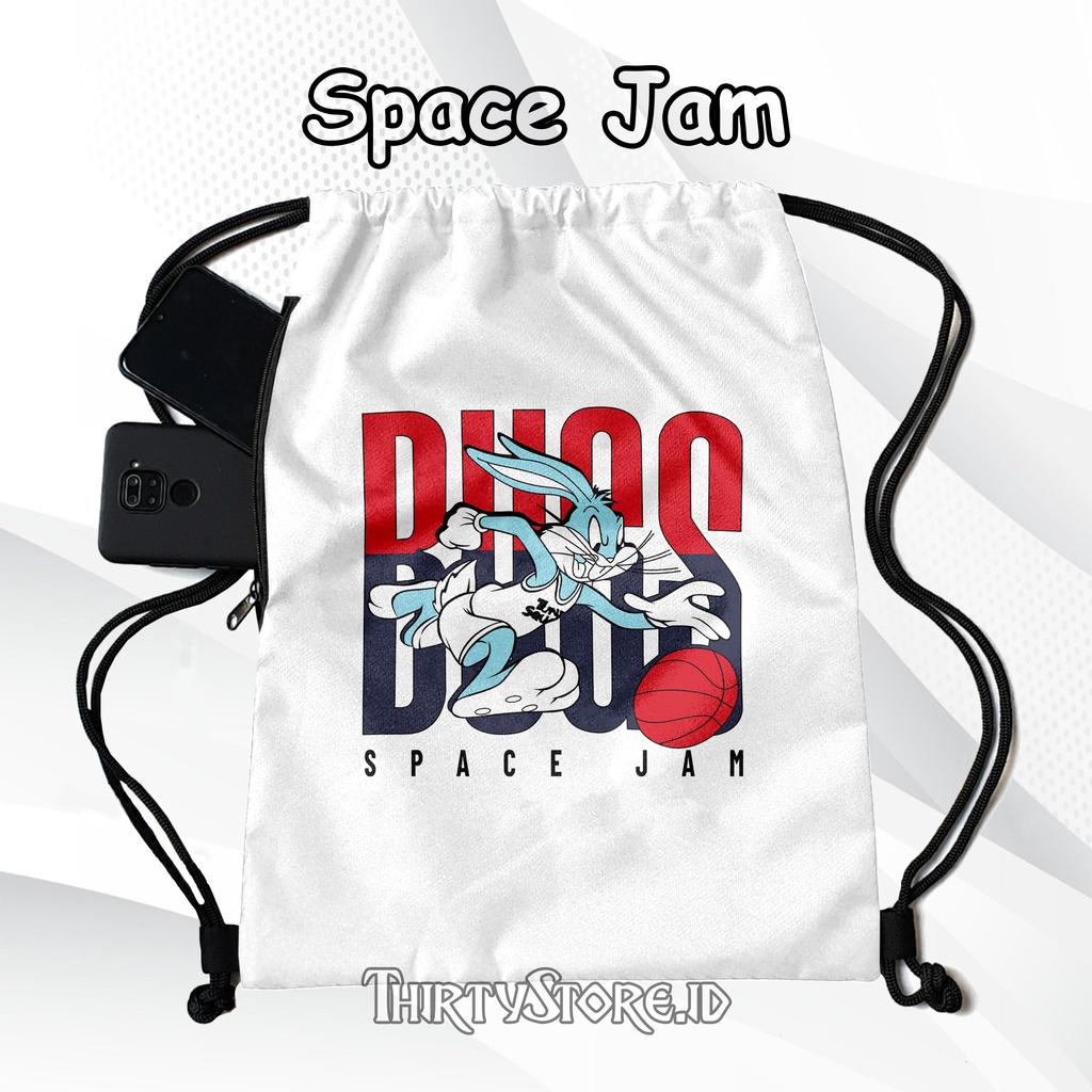 Detail Tas Serut Anti Air New String Bag Full Print Pria Dan Wanita Motif Space Jam Tas Olahraga Tas Sekolah