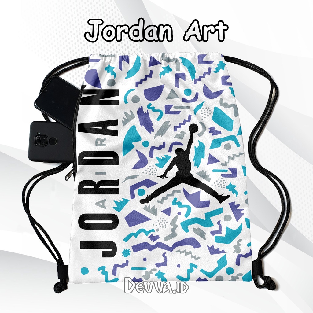 Detail Tas Serut Anti Air String Bag Full Print Pria Dan Wanita Motif Jordan Art Tas Sekolah Tas Olahraga