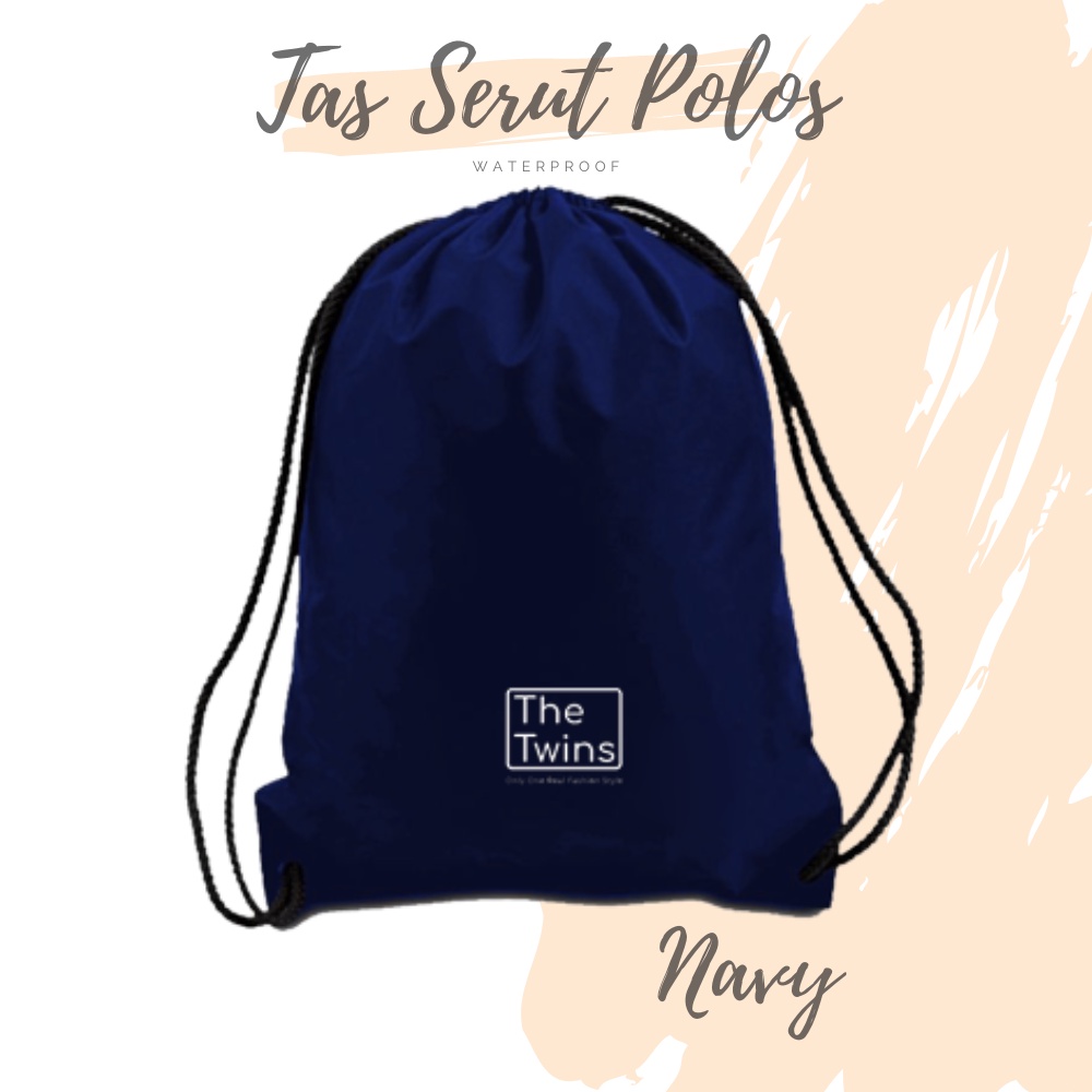 Detail Tas Serut Hampers atau String Bag Bergambar The Twins Polos Navy