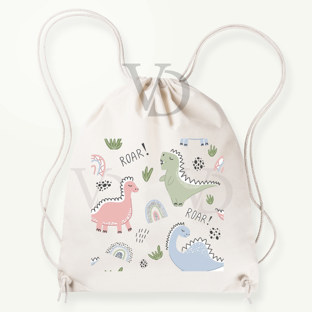 Detail Tas Serut kanvas set dino/ tas serut korea / tas lucu/ tas gendong kanvas / tas custom korea / tas motif Dinosaurus