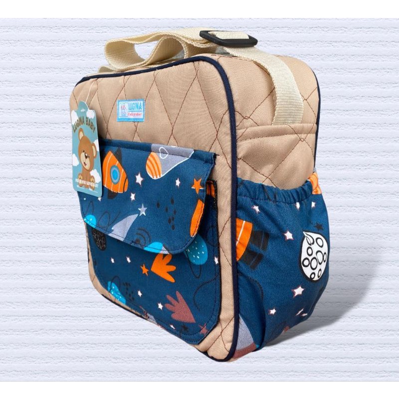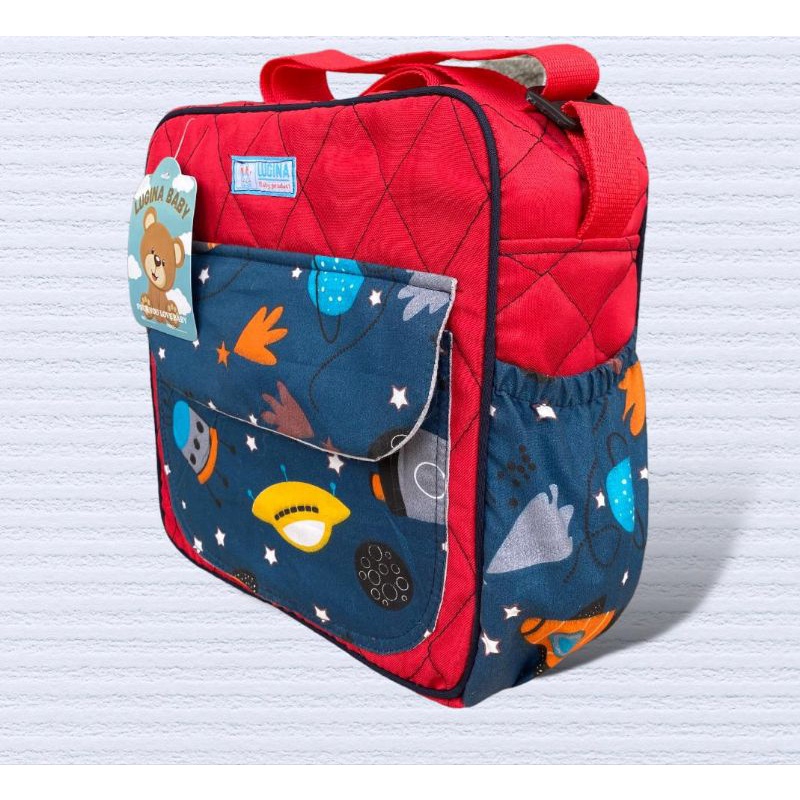 produk baru tas slempang medium perlengkapan bayi. ukuran 26x26x12cm,panjang tali 110cm. debgan satu saku utama,dua saku ponggir dan satu saku depan. 3 warna pilihan,merah,navyblue,dan krem. produk realpicture 100%