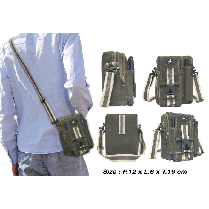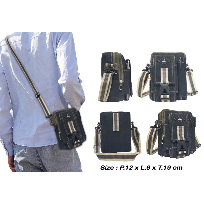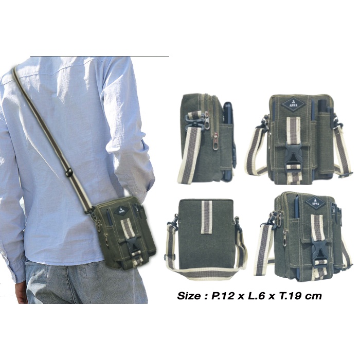 Kode Barang : BP306, AP306 Penutup tas : Zipper Ukuran Tas -+: p.12 x l.6 x t.19 cm Made In : Indonesia Bahan BP306 : Kanvas Bahan AP306 : cordura