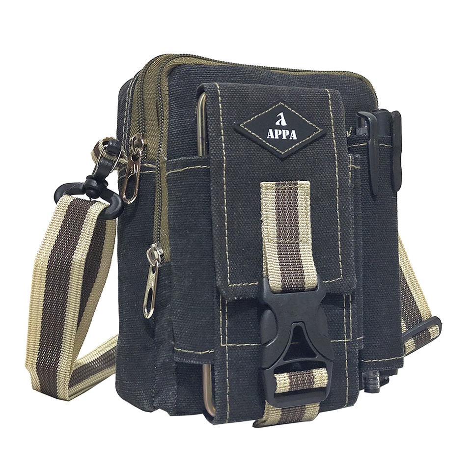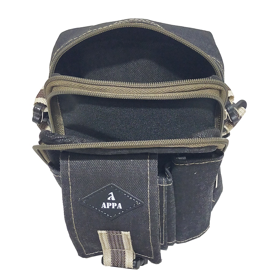 Tas APPA dengan bahan Kanvas yang tebal dan bagus yang akan membuat anda tampak elegan Tas ini bisa memuat perlengkapan gadget anda dan juga perlengkapan lainnya, Smartphone, Power Bank, buku-buku memo, dan lain lain. Yang cocok digunakan untuk mobilitas kegiatan harian anda. Tas APPA terdiri 2 Ruang dan 1 saku di bagian depan. Terdapat 1 saku di bagian dalam tas. Tas ini di buat oleh pengerajin lokal yang ahli di bidang nya. Tas ini bagus untuk segala aktivitas di dalam ataupun di luar ruangan. Tas ini cocok di pakai oleh pria atau wanita.
