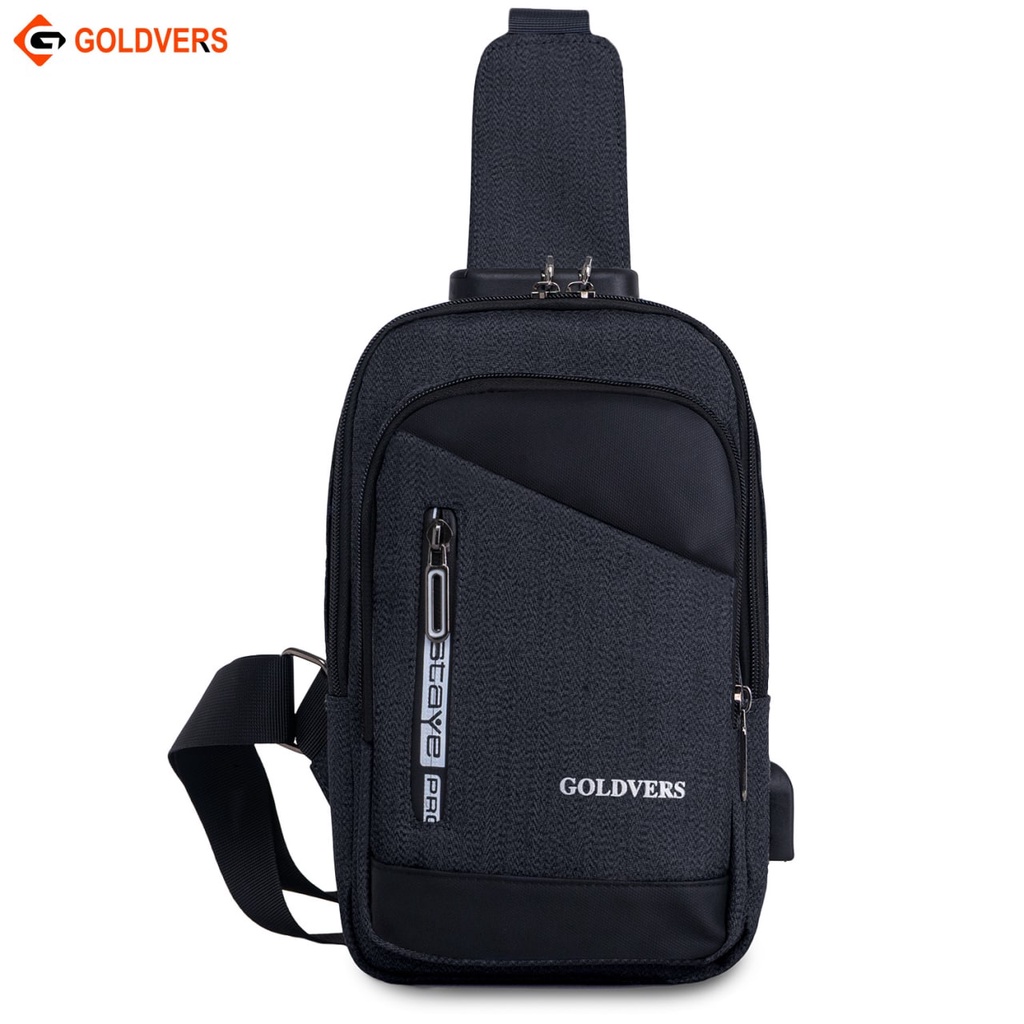 Detail Tas Slempang Pria Import High Quality FREE Kabel USB + Port Charger