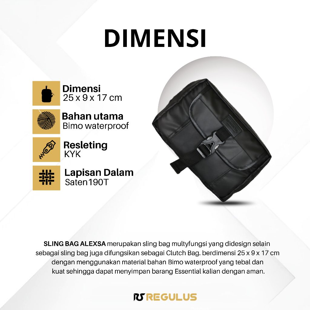 Detail Tas Slempang Sling Bag Alexa Waistbag Pria Clucth Bag Waterproof Premium