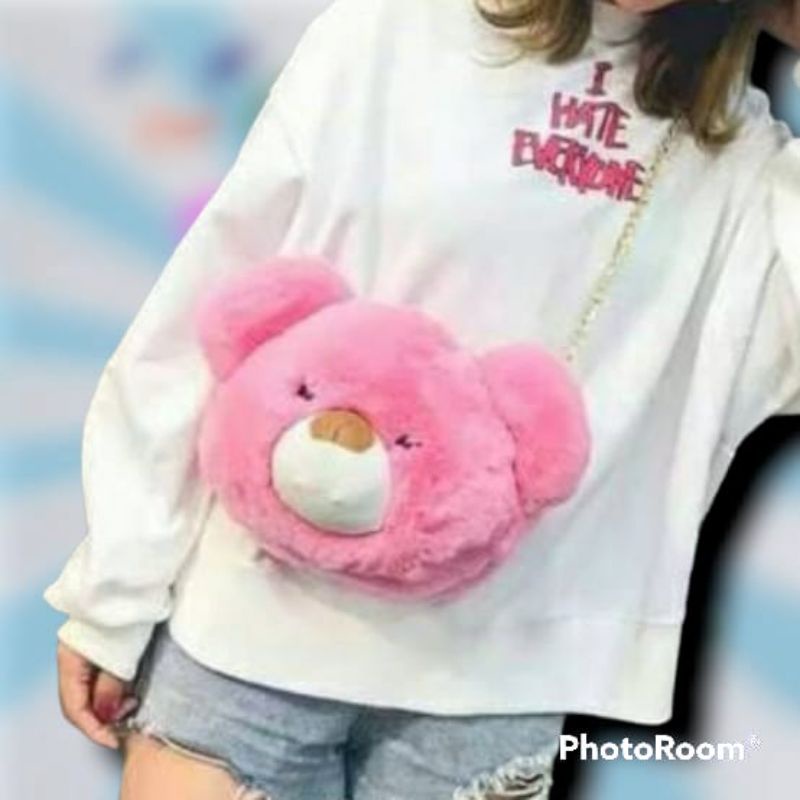Detail Tas SLempang Tedy bear/tedybear macan/slingbag bulu bulu kepala beruang lucu terbaru
