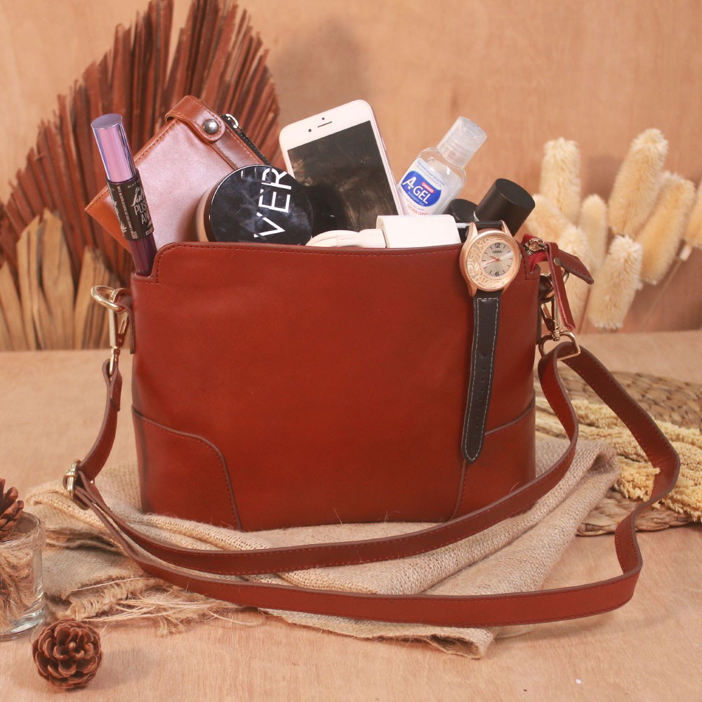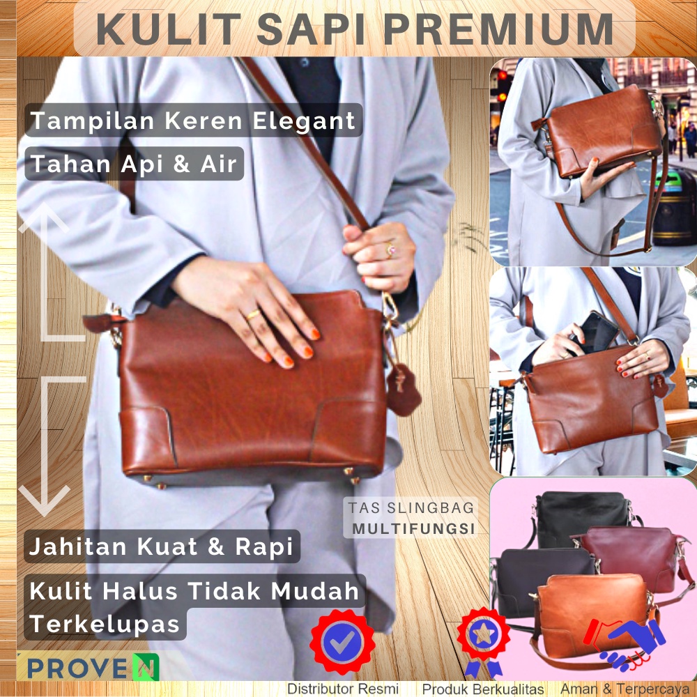 Tas Selempang Kulit Wanita Asli Tas Slempang Wanita Kulit Cewek AL02 Morgante Sling Bag Fungsional KULIT SAPI ASLI ALICE LEATHER GARANSI ORIGINAL