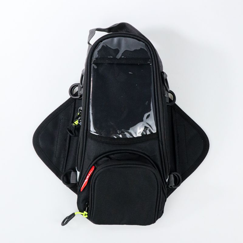Tas motor dengan smartphone holder ini memiliki banyak slot tempat yang dapat memudahkan Anda menaruh barang bawaan dengan rapi. Tas ini bisa diletakkan di bagian cab pada tangki motor maupun dipakai secara casual. Selain itu tas ini juga memiliki plastik pelindung air tambahan saat hujan.