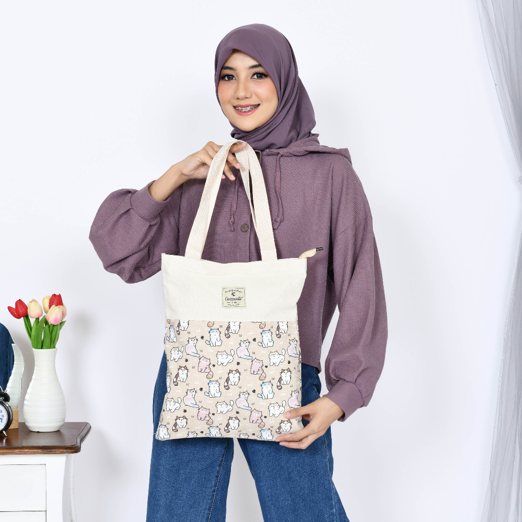 Tas Wanita > Tote Bag > Tote Bag > Tas Tote Bag Aesthetic Resleting Kuliah Wanita Kekinian bahan kanvas Polos dan Canvas motif bisa custom sablon untuk seminar souvenir gift dll