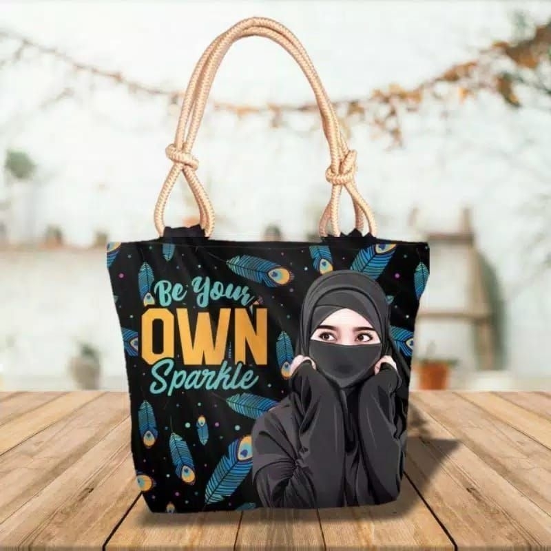 Detail Tas tote bag Tali Sumbu Wanita Muslimah Hijab Terbaru Colortful Design Totebag Hijab Terbaru