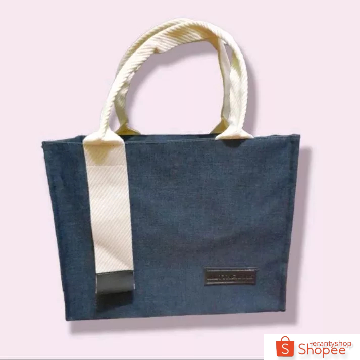 – Handle webbing premium – Pakai kancing magnet – Bahan denim anti air – Reuseable – Bisa utk hampers / souvenir – Produk lokal