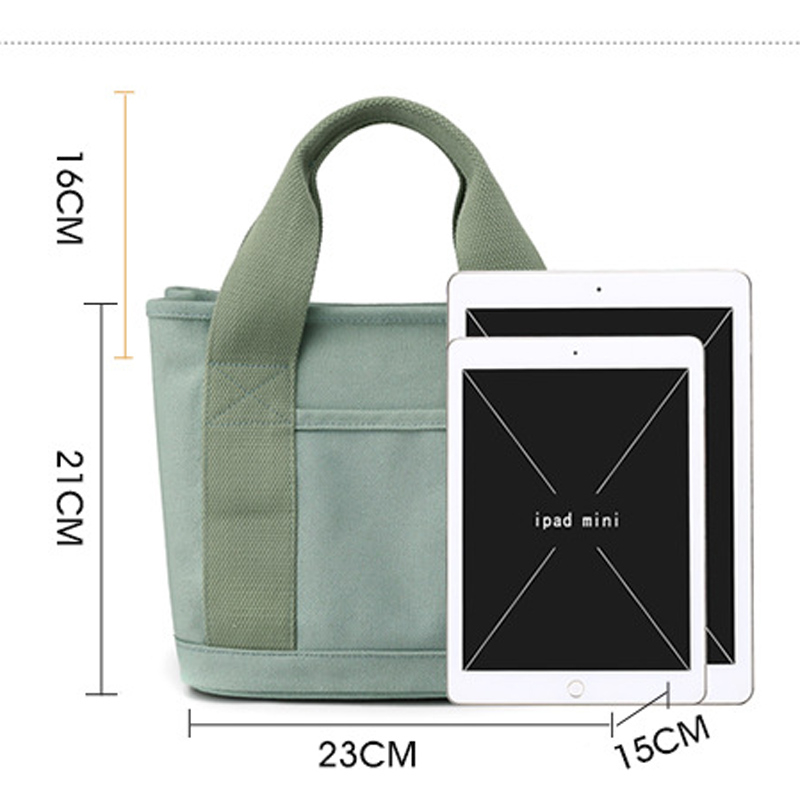 Bahan: Kanvas Ukuran: 23 x 15 x 21 cm Warna: hitam, navy, beige , coklat, tosca Berisi : tas + tali panjang