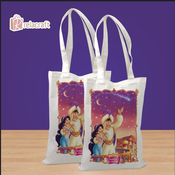 TAS TOTEBAG BESAR/SOUVENIR ULANG TAHUN/TEMA ALADIN DAN JASMIN