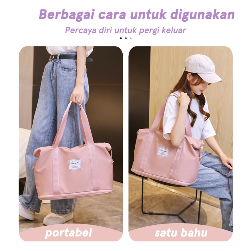 Desain Original: Ukuran produk: lebar 42cm, tinggi 27 (+13) cm, tebal 24cm Fitur Produk: - Bahan waterproof yang tebal, tidak perlu khawatir basah saat hujan - Dapat digunakan dalam berbagai skenario, gym, travel, perjalanan bisnis, dll. - Kapasitas besar, bagian bawah tas dirancang dengan area yang dapat diperpanjang, yang dapat menyimpan semua barang - Terdapat beberapa desain kompartemen di dalam tas, yang dapat menyimpan barang-barang basah dan kering - Ada tali di bagian belakang tas untuk mengikat tas ke koper Desain Terbaru Bahan produk: kain oxford tahan air Ukuran produk: 40*22*42cm Deskripsi: 1. Terbuat dari kain oxford bertekstur,tahan percikan, tahan noda, sehat dan bebas bau, mudah dibersihkan dan mudah dibawa saat berpergian. 2. Ruang penyimpanan berkapasitas besar dapat dengan mudah memenuhi kebutuhan perjalanan bisnis dan perjalanan jarak pendek. 3. lebih jelas untuk mengklasifikasikan dan menempatkan barang, satu paket barang perjalanan dapat dilakukan. 4. Tas ritsleting depan dapat menyimpan barang-barang kecil, mudah dibawa. Saku ritsleting belakang dapat digunakan untuk menyimpan dompet ponsel, yang aman dan anti maling. 5. Built-in tas pemisahan kering dan basah, dapat menempatkan handuk basah, pakaian basah, dll, kering dan basah, tidak takut ransel basah! 6. bagian belakang dikelilingi oleh slot sleting, yang dapat dipasang pada gagang koper. 7. Desain kompartemen independen, penyimpanan terpisah dari pakaian, bersih dan higienis. 8. Tas dapat dilipat dan disimpan tanpa memakan tempat, sehingga lebih nyaman untuk dibawa-bawa. 9. Berat tas sangat ringan, bahkan jika tas penuh dengan barang, tidak berat! 10. Berbagai metode pembawaan, dapat disesuaikan. 11. dijahit rapi, indah dan tahan lama. 12. Desain pegangan yang nyaman, lebih nyaman untuk dibawa dengan tangan. 13. Bukaan tas dibagian tengah untuk memperbesar kapasitas tas 14. pengerjaannya teliti dan jahitannya rapi 15. Tas terbuat dari bahan anti air, yang secara efektif dapat melindungi isi tas saat hujan.